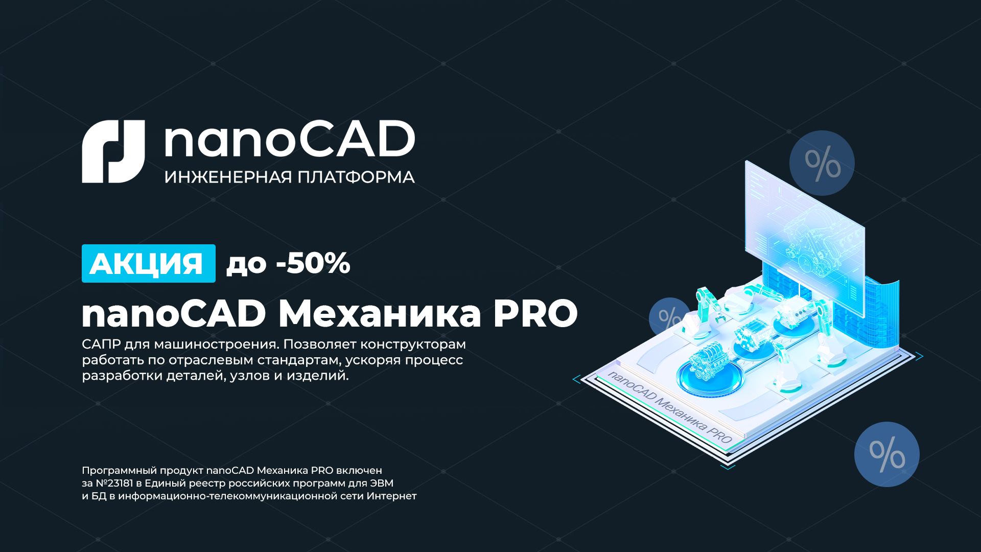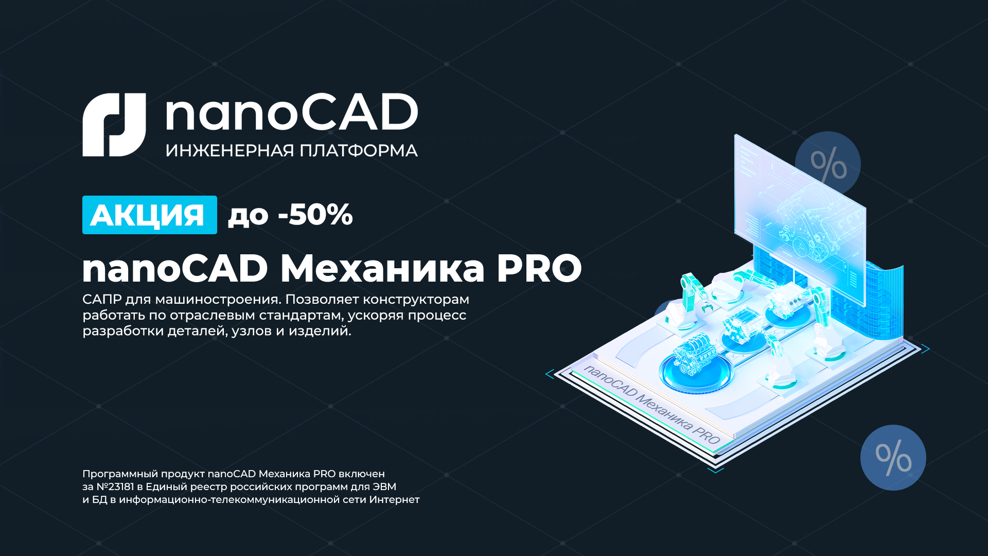 Скидка до 50% на приобретение лицензий продукта "nanoCAD Механика PRO 2.0"